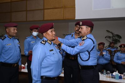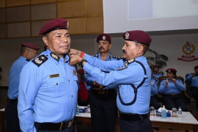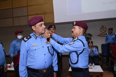 काठमाडौं ।नेपाल सरकार मन्त्रिपरिषद्को २०७९ चैत २४ गतेको निर्णयअनुसार प्रहरी नायव महानिरीक्षकबाट प्रहरी अतिरिक्त महानिरीक्षक पदमा पदोन्नति हुनुभएका ४ जना प्रहरी अतिरिक्त महानिरीक्षकहरू दर्ज्यानी चिन्हद्वारा सुशोभित हुनुभएको छ ।
