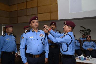 प्रहरी महानिरीक्षक बसन्त बहादुर कुँवरले नेपाल प्रहरी प्रधान कार्यालयमा आइतबार आयोजित एक समारोहबीच प्रहरी अतिरिक्त महानिरीक्षकहरू सन्दिप भण्डारी, सुदिप गिरी, मिरा चौधरी र टेक बहादुर तामाङलाई दर्ज्यानी चिन्हद्वारा सुशोभन गर्नुभएको हो ।